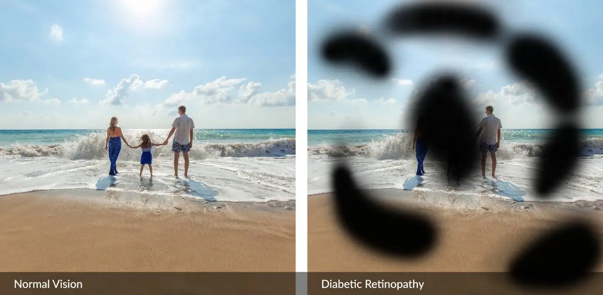 Diabetic retinopathy, an eye disease caused by diabetes, can lead to vision loss due to damaged and abnormal blood vessels. Regular eye exams are crucial for managing this condition